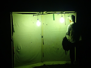 【左】始めのお話 【右】誘蛾灯をセットしてナイトハイクに出発