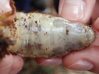 比較的大きなコナラたちが枯れて立ち枯れ、木が朽ち始めた木からはコクワガタの 幼虫がみられた。ただ、コクワガタは当たりが悪かったのか幼虫はほんの少し、成虫 は1ペアが見つかった。また、地面に近いところからはカブトムシの幼虫も見られ た。大きなカミキリムシの幼虫もいくつか見られた。池にはオオバンやマガモ、カル ガモ、カイツブリも見られ例年通りの姿にホッとした。(記・竹内秀)