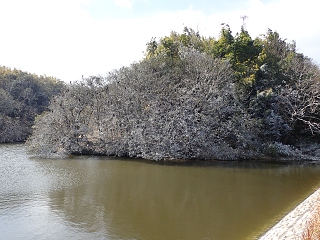 【上の1枚】菅田池の水際林 カワウの排泄物で真っ白