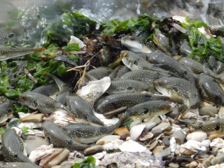 午後4時頃クサフグの産卵は終わりました。以前と比較して、年々クサフグの産卵の規模が小さくなってきているようです(記・大矢 晃)