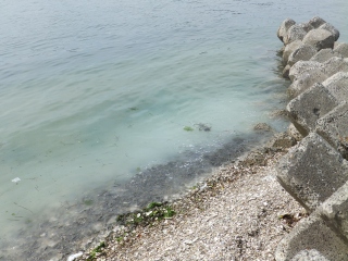 午後2時14分頃、聖崎公園に到着した時点でクサフグは少しづつ集まり出していました。