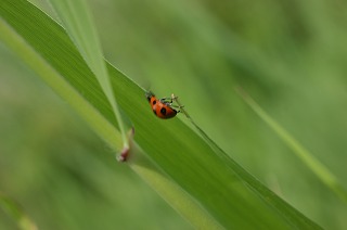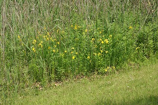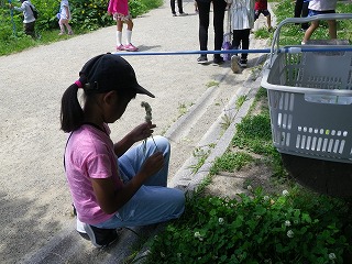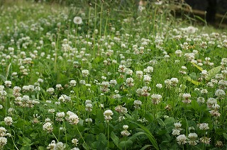 【左】キショウブ 【中】シロツメクサ 【右】ナナホシテントウムシ