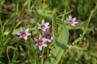 【左】ニワゼキショウ 【中】トクサ 【右】セッカ・ニワゼキショウ