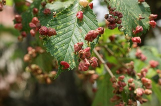 【左】ハルニレの虫瘤 【中】モンシロチョウ 【右】ザクロの花 (ウィンナソーセージ蛸)