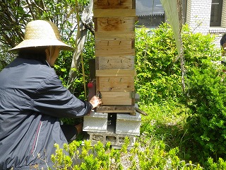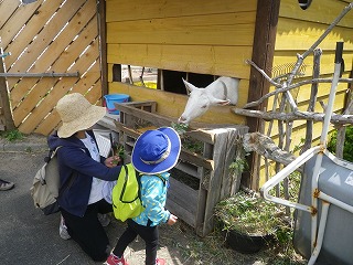 【左】挨拶、今日の予定 【中】南陵の山羊(しろちゃん) 【右】南陵で飼育しているニホンミツバチ