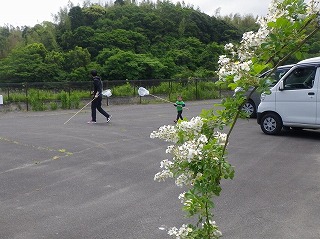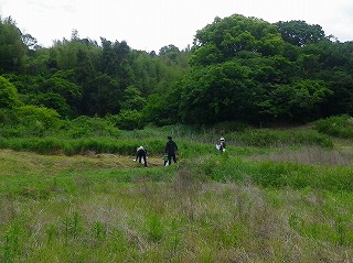 【左】ノイバラが沢山咲いていました。 【右】耕作放棄地は乾燥してセイタカアワダチソウが繁茂していました。