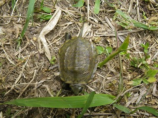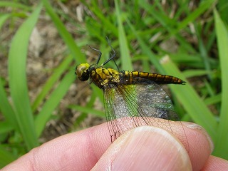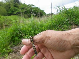 【左】シオカラトンボ 【中】イシガメ(幼体) 【右】ヤグルマソウ、キタテハ