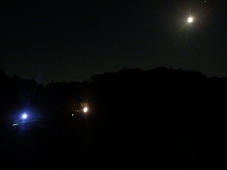 左…道路照明用の電灯 中…灯火採集場所の電灯 右上…月の明かり 月の右斜め上…木星