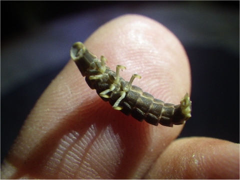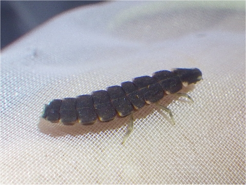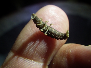 光っているのはいくつか確認できましたが、幼虫の姿は見つからないかと諦めかけた時に、正躬先生が意地で?見つけてくれました。