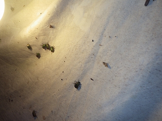 【右】スクリーン上の黒点はすべてアオドウガネ