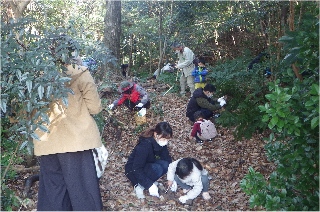 その後、任坊山の森の中で朽ち木の中で越冬している虫たちを探しました。一番多く出たのはコガタスズメバチの女王バチ。幼虫はキマワリ、コクワガタ、カミキリムシ、ユミアシゴミムシダマシ。その他、ヒゲジロハサミムシ、トビズムカデ、ジムカデ、ダンゴムシなどたくさんの虫たちに出会えました。(記:牧野)