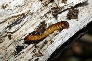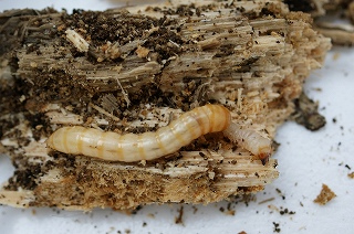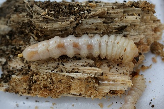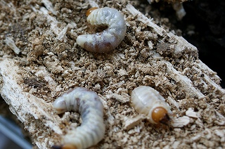 【左】キマワリの幼虫 【中】クワガタムシの幼虫 【右】カミキリムシの幼虫