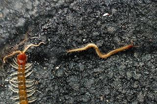 【左】ユミアシゴミムシダマシの幼虫 【中】ムカデの仲間 【右】コガタスズメバチ