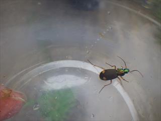 【左】アトボシアオゴミムシ。チョウ、カエル、ザリガニなどを大好きな坊やはこの虫に興味示さなかった
