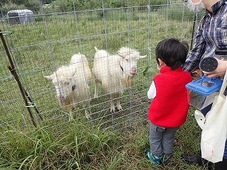 人懐こい、餌くれモードの2ひきのヤギにクズの葉をあげるのも楽しかった。”