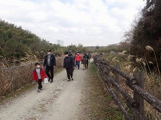 曇り空。風もなく どんより暖かいが、タンポポもオオイヌノフグリも花を閉じて、冬の生き物たちの息づかいが見づらいスタートとなった。