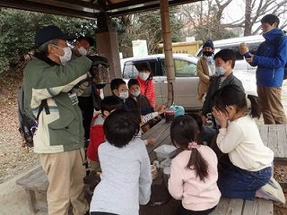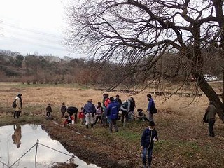 それでも、今日はドライバーいるのかなあ、マイナスじゃなくてプラスもって来ちゃった。といった若いお母さんたちやお父さんも含め大人11人子供12人と、賑やかな会となった。途中、田んぼの脇の水たまりをのぞき込んで、マルタニシがいるねえ。カエルの卵はまだだねえ。といった会話も聞かれた。タモで探るとハゼの仲間やシオカラトンボのヤゴがつかまった。