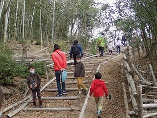 【左】たくさんの人が集まり… 【右】真冬の里山を進むと