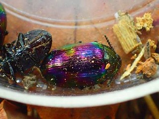 朽ち木の中からはコクワガタの 幼虫がみられた。ただ、コクワガタは当たりが悪かったのか幼虫はほんの少し。ノコギリクワガタの幼虫もいたようだ。成虫はいなかった。その代わりに珍しいと言われるチビクワガタが何頭も見られた。スズメバチの女王さんや、虹色に光るヒゲナガニジイロゴミムシダマシという何やら名前の長い虫が見られた。