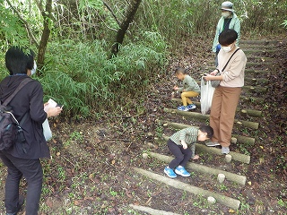 まず工作の材料を探し集めるために公園内に入りましたが、ぬれた落ち葉で足元が滑りやすかったり、折角のドングリが湿っていたりしました。