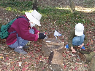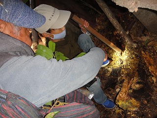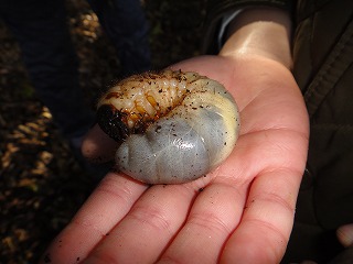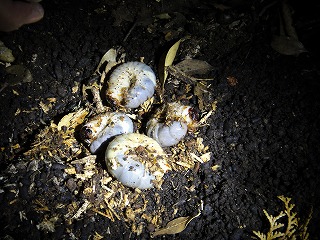 【左】紅葉谷 登坂   【中】カブトムシ幼虫がいた!   【右】伐採木集積場 いつも見つかるカブトムシ幼虫