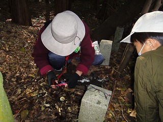 【左】かぶとむし幼虫の糞塚   【中】手水池の言い伝え   【右】谷葉紅 案内