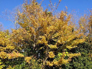【左】トウネズミモチ   【中】トウネズミモチ 果実   【右】トウカエデ 黄葉