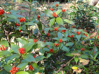 【左】センリョウ 果実   【中】センリョウ 果実   【右】マンリョウ 果実