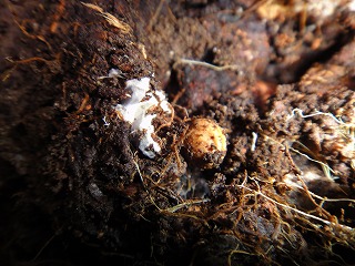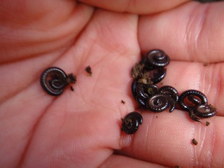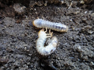【左】カタツムリ 歯舌食痕   【中】カブトムシ 幼虫   【右】カブトムシ 幼虫