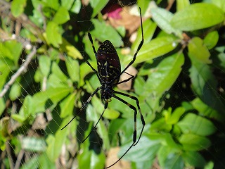 【左】木切れの下にいたコガネムシ類の幼虫   【中】ジョロウグモ   【右】ヤケヤスデ
