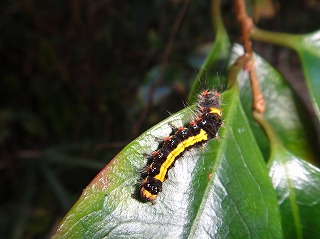 【左】樹上のサトクダマキモドキ   【中】同左  【右】キドクガ 幼虫