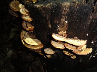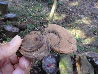 【左】クジラタケの老菌   【中】カワラタケ   【右】