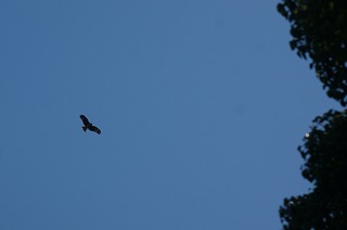 鎮守の森から空を見上げると、高木に囲まれた狭い空に偶然にも2羽のオオタカとノスリ、トビを同時に見ることができた。