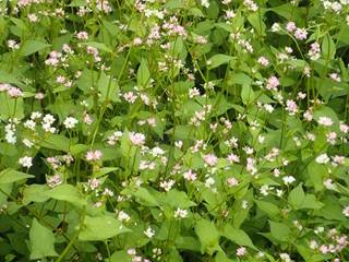 【左】ミゾゾバの花盛り       【右】ヨシとセイタカアワダチソウ