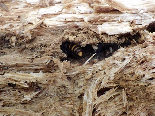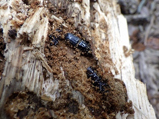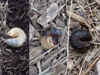 【左】玉虫の仲間の幼虫  【中】コガタスズメバチの尻が見える  【右】ヒメナガニジゴミムシダマシ