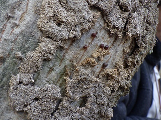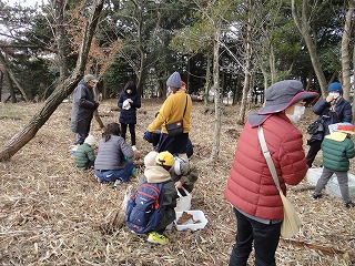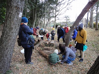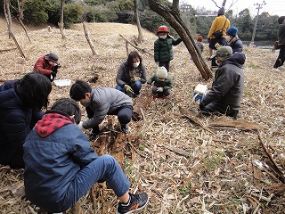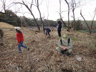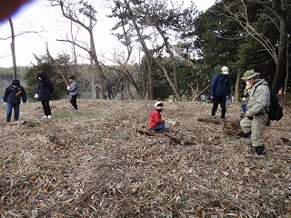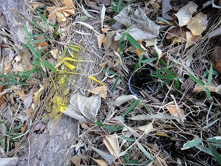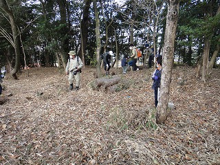 【左】松の伐採木の下から開始 【右】雑木林丘の上