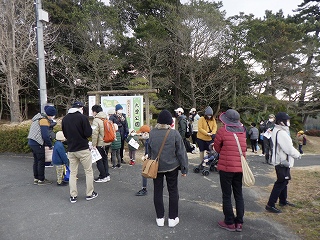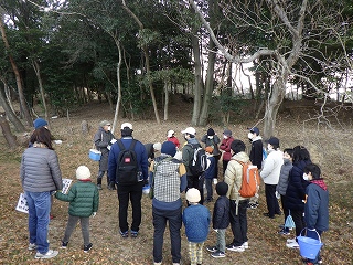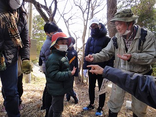 【左】応募参加者9家族15名 【中】開会挨拶、諸注意 【右】雑木林の丘の上