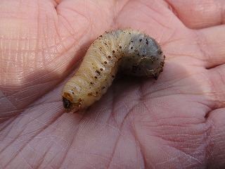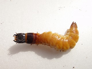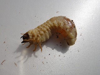 【左】ウバタマコメツキ(幼l虫) 【中】キマワリ(幼虫) 【右】カナブン(幼虫)