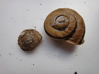【左】ワラジムシとクモの仲間 【中】オオケマイマイ、イセノナミマイマイ 【右】メジロの巣 (合成繊維製)