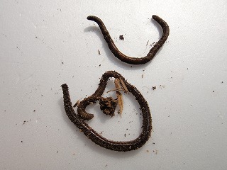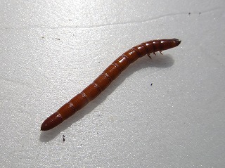 【左】イシムカデ 【中】コクワガタ(幼虫) 【右】カミキリムシ(幼虫)