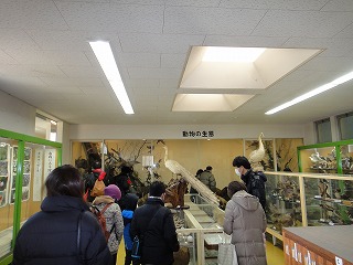 【左】一般参加応募者数19名、主催者挨拶     【右】動植物資料館巡回