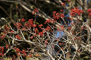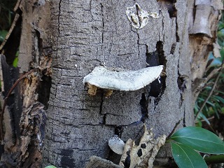 【左】菌類(老菌)   【中】クロガネモチ 結実   【右】キリ 結実