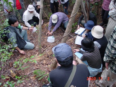講習会の目的は、単に生き物の名前を覚えるというような内容ではありません。まず、マクロで自然をながめて、自然のしくみを知ること。そのためには五感を最大限働かせて、自然を観察すること。また、さまざまな角度から自然を観察をすることにより、自然の偉大さ、大切さを知ること。そして祖先から預かったこの自然を守って子孫に引き継ぐことの大切さを理解・習得することを目的としています。