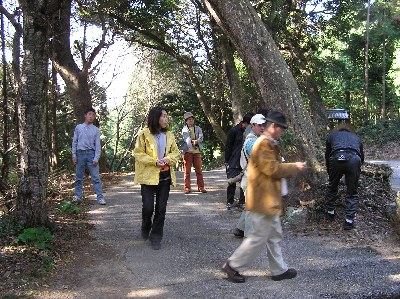 【右】大山のヘリ訓練用地の前で記念写真。自然がいっぱいの山です。