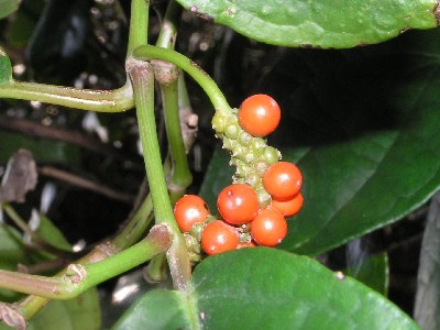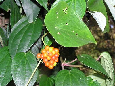 【右】フウトウカズラの実です。コショウの仲間でかじったら後で辛かった。