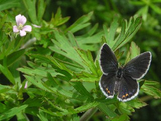 【左】ツバメシジミとアメリカフウロ。