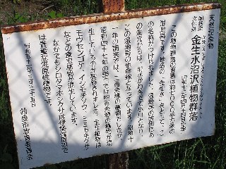 【右】金生水沼沢植物群落説明版