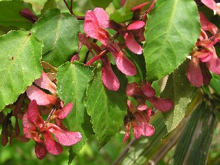 【左】ウリカエデ、きれいな若い実がついていました。