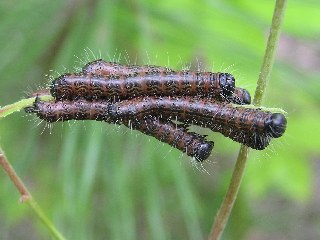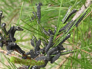 【右】マツノキハバチの幼虫。