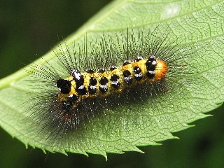 【左】暖地性のモンシロドクガの幼虫です。触ると大変です。